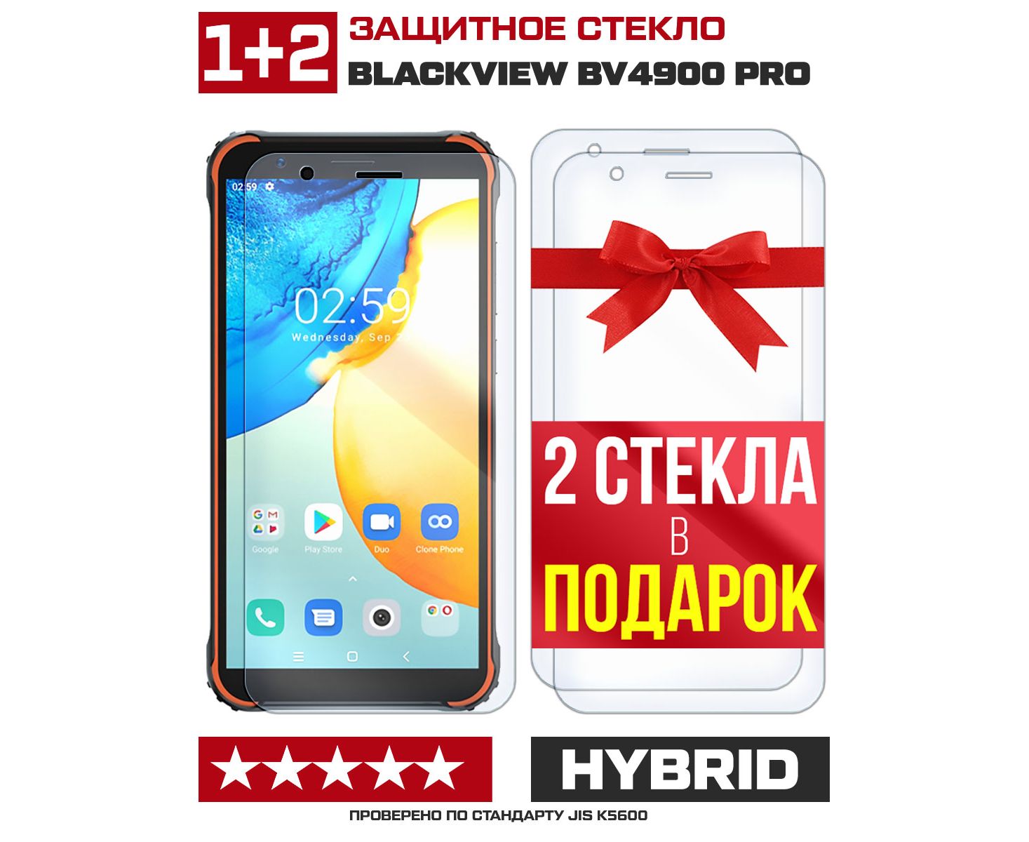 Комплект из 3-x защитных гибридных стекл для Blackview BV4900 Pro