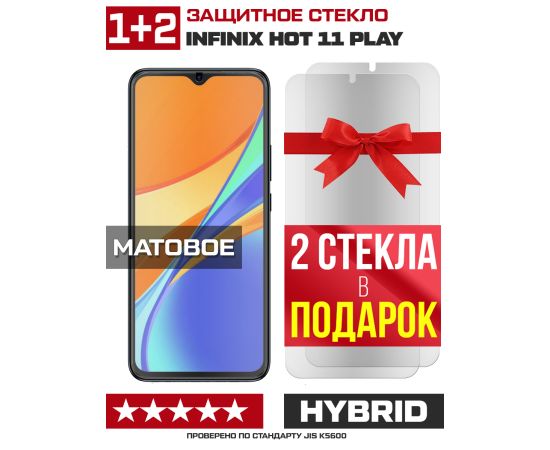 Комплект из 3-x защитных гибридных стекол МАТОВЫХ Krutoff для INFINIX Hot 11 Play