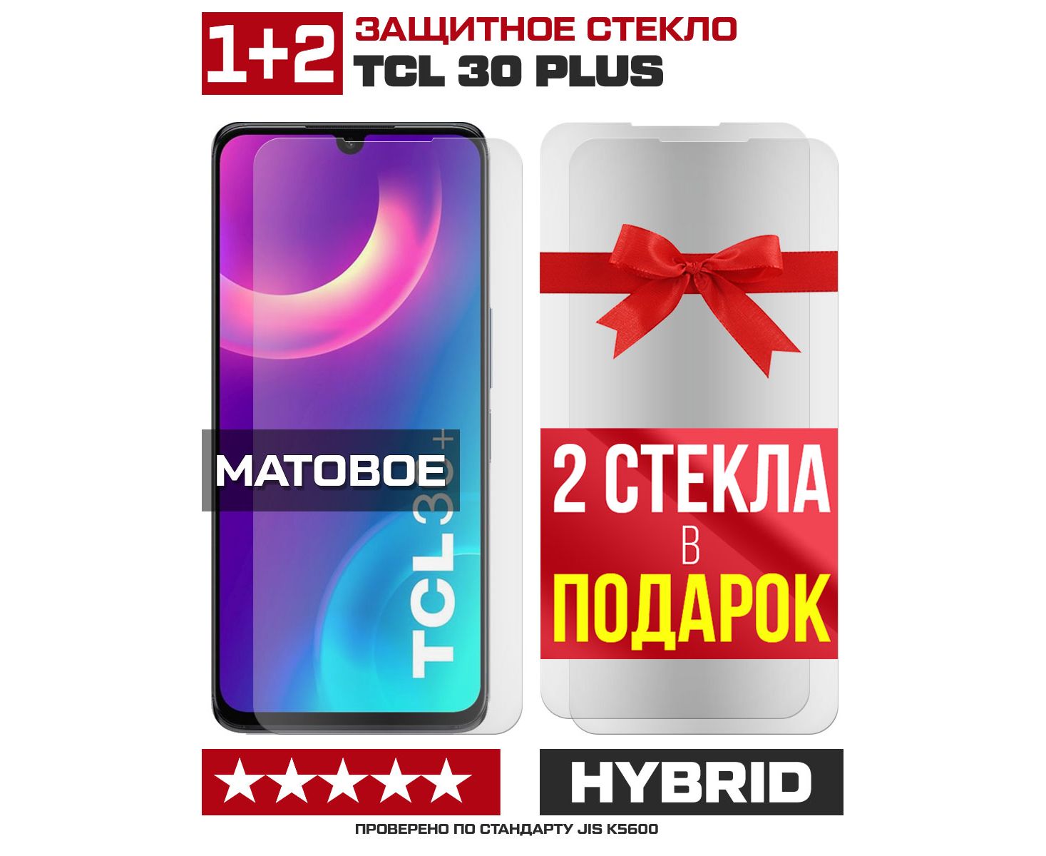 Комплект из 3-x защитных гибридных стекол МАТОВЫХ Krutoff для TCL 30 Plus