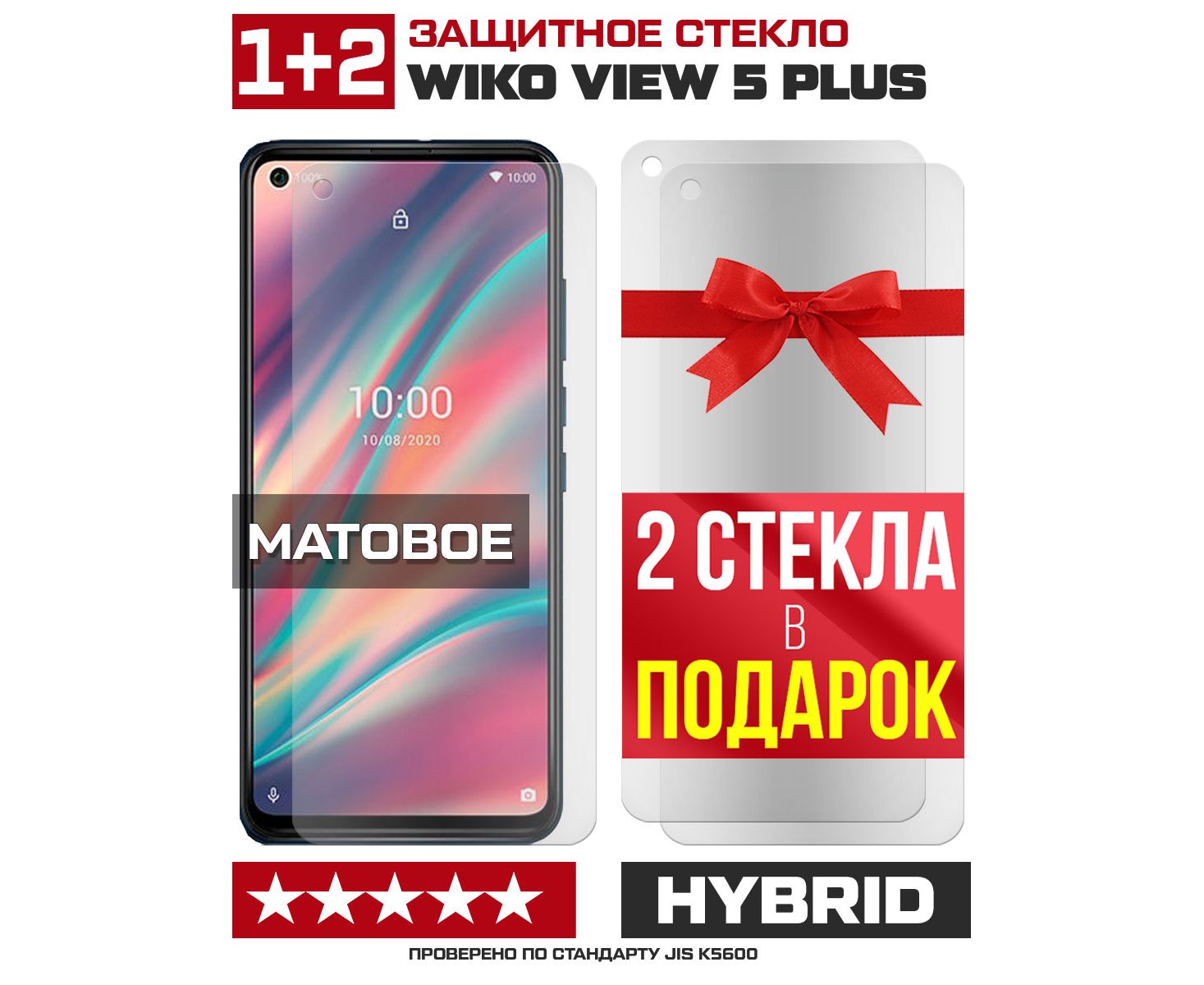 Комплект из 3-x защитных гибридных стекол МАТОВЫХ Krutoff для Wiko View 5 Plus