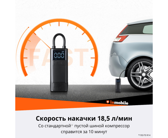 Компактный и мощный. Компрессор 70mai TP05 – полностью автономный попутчик, который никогда не подведет в дороге. Все дело во встроенном аккумуляторе. Его емкость - 2500 мАч. Зарядите компрессор перед путешествием и при необходимости одним движением подкачайте шину. На стандартное колесо уйдет около 10 минут. Скорость подкачки - 18,5 л/мин. Корпус компрессора сделан из металла. Он устойчив к повреждениям. 70mai TP05 не занимает много места – прибор не больше смартфона. В комплекте три насадки – вы можете подкачать не только автомобильные шины, но и мячи, колеса велосипеда или мотоцикла. Доступно пять режимов с разными показателями давления воздуха. Следите за процессом с помощью встроенного дисплея. Фонарик – приятный бонус