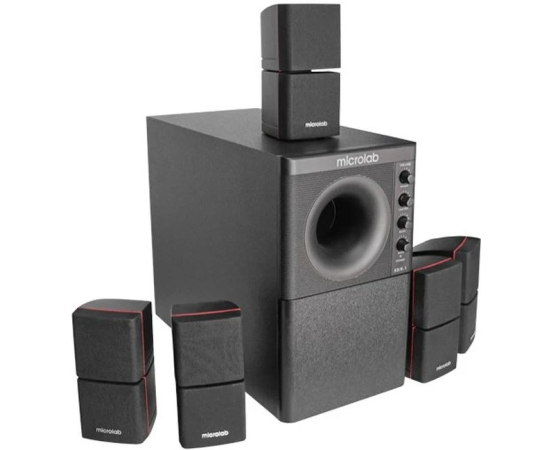 Мультимедийная колонка Microlab X3BT 5.1 - это высококачественный настоящий 5.1канальный звук, который превратит вашу гостиную в кинотеатр. Эта система, оснащенная мощным сабвуфером и пятью сателлитами, позволит вам слушать звук киношного качества у себя дома. Идеально подходящие для смартфона, телевизора/CD/DVD/Blu-ray DVD-плеера, эти универсальные колонки позволят вам легко подключить и управлять ими. Усовершенствованная конструкция для цифровых развлечений, сабвуфер имеет встроенный усилитель, который управляет динамиками. Звук точно воспроизводится с минимальными искажениями благодаря качественным динамикам. Твитеры-сателлиты расположены по углам комнаты для обеспечения динамичного звучания. Такое расположение аналогично тому, что используется в кинотеатре, чтобы создать звуковое движение для создания реалистичной атмосферы.