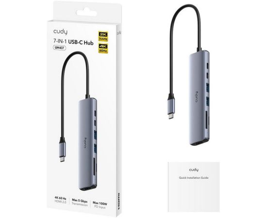 Концентратор Cudy UH407 USB-C 7 в 1 с поддержкой HDMI 4K и слотами для карт памяти SD и TF