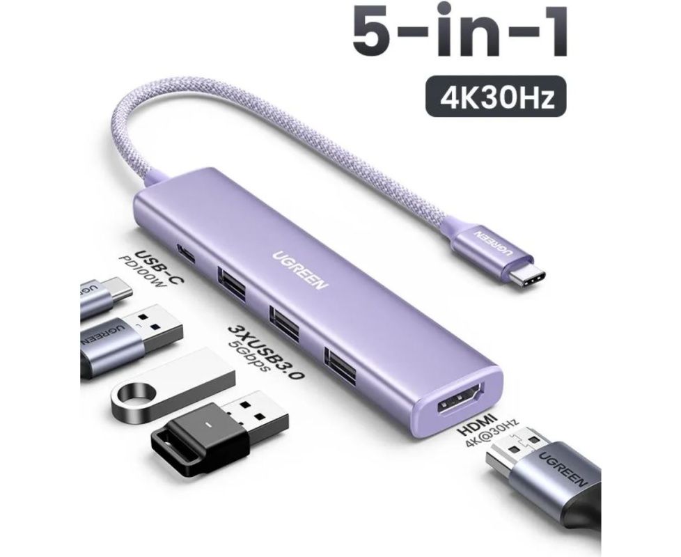 Конвертер UGREEN CM478 (35581) USB-C To HDMI 4K 31Hz+3*USB 3.0 A+PD Power Converter Blue