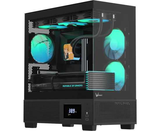 Корпус Formula V Line Crystal E1M Black, MATX, USB3.0*2, Switch Display Panel