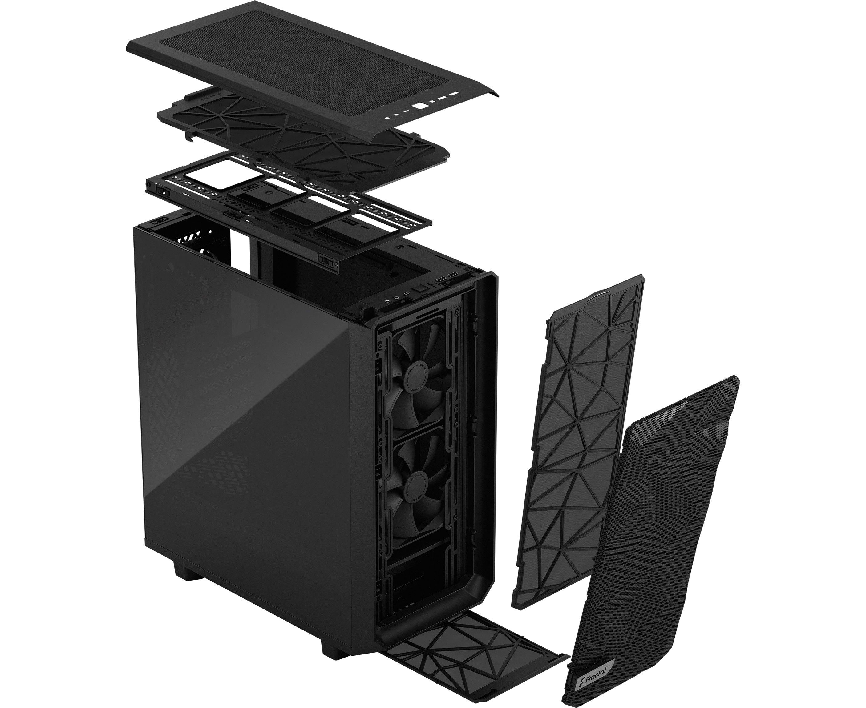 Корпус Fractal Design Meshify 2 Compact Black - DARK TG / ATX, TG / 2x140mm & 1x120mm fans inc. / FD-C-MES2C-02