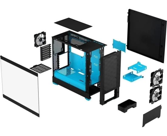 Корпус Fractal Design Pop Air RGB Cyan Core TG Clear Tint (FD-C-POR1A-02) без БП Midi-Tower, 3x120mm 2xUSB-A 3.2 ATX, mITX Black/Cya