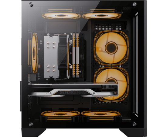 2 x 120 мм на верхней панели, 2 x 120 мм на боковой панели, 120 мм на задней панели, 2 x 120 мм на нижней панели