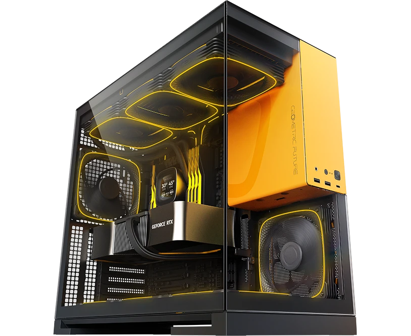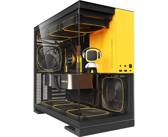 Корпус Geometric Future Model 5 Black Yellow with fans (1AM5WKBY01100) / mid tower, E-ATX / 5x140mm ARGB fans