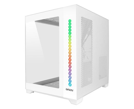 Корпус Ginzzu V420 RGB подсветка, закаленное стекло 1*USB 3.0,1*USB 2.0, AU Белый mATX