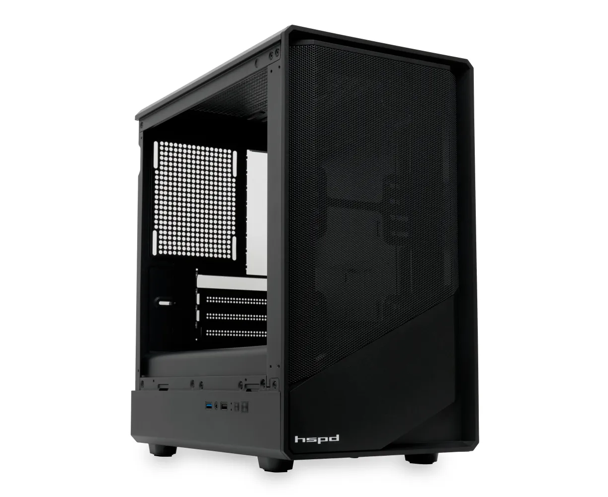 Корпус HSPD M331 (M331-TGBK), без БП Mesh Mini-tower, Black, TG, 0.4 SPCC, no fans mATX, mITX 175/329/170mm 1x2.5", 2x3.5",