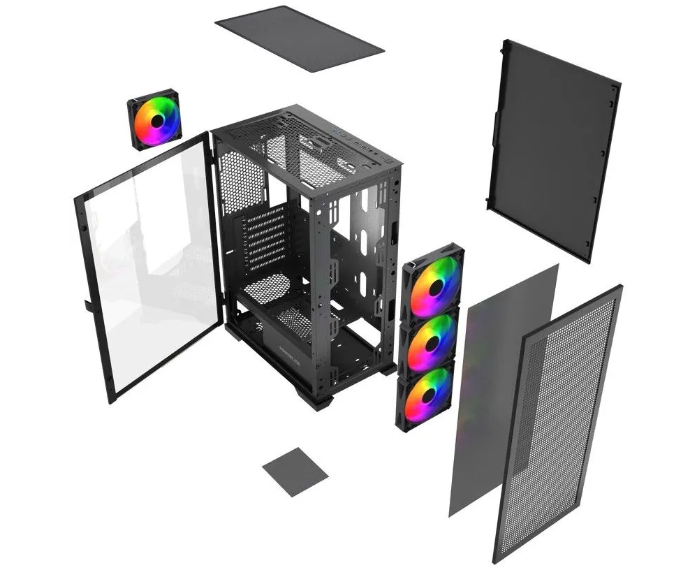 Корпус Powercase Mistral B415 (CMAB415-A4), Tempered Glass, 4x 120mm ARGB PWM Fans, чёрный, ATX