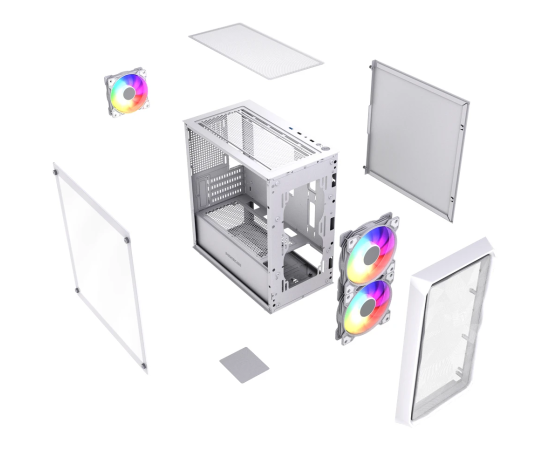 Корпус Powercase Mistral Micro A3W ARGB V2 (CMMAW-A3-V2), Tempered Glass, 2x 140mm ARGB PWM+1x 120mm ARGB PWM, белый, mATX