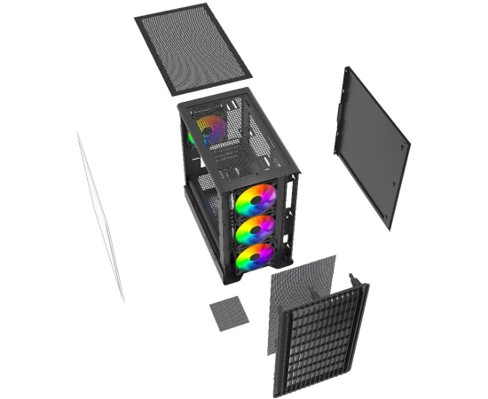 Корпус Powercase Mistral Micro C4B ARGB (CMMCB-A4), Tempered Glass, 4x 120mm ARGB PWM Fan, чёрный, mATX