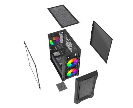 Корпус Powercase Mistral Micro X3B ARGB (CMMXB-A3), Tempered Glass, 3x 120mm ARGB PWM Fan, чёрный, mATX
