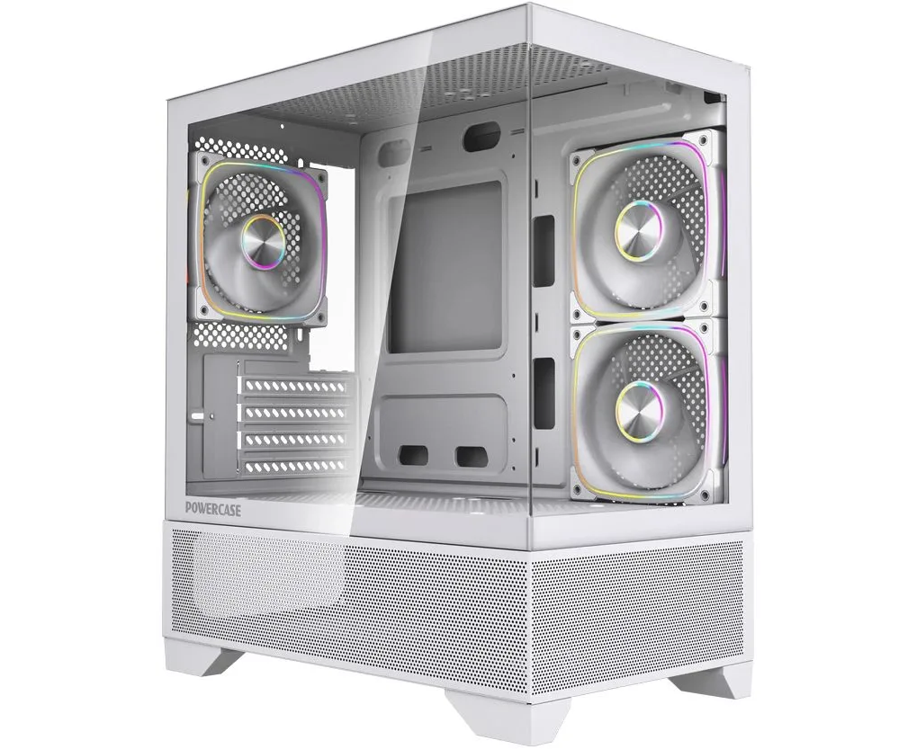 Корпус Powercase Vision Micro M4W (CVMM4W-A3), Tempered Glass, Type-C, 3x 120mm ARGB PWM Fan, белый, mATX