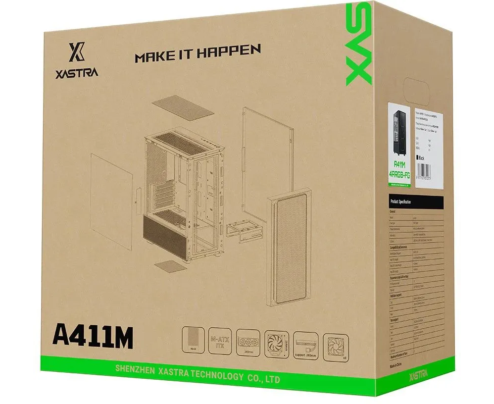 Корпус XASTRA A411M 4ARGB-FG Black (A411M-4FG12A) mATX/Mesh /ScrewlessTG+mesh panel/ 4x120mm ARGB PWM FG fans