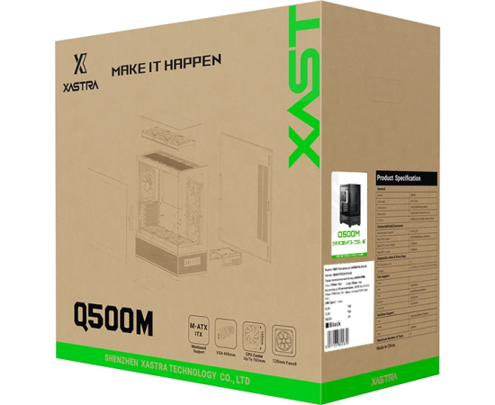 Корпус XASTRA Q500M 3ARGB-FG-C10-UC Black (Q500M-3FG12A-C10-UC) mATX/Aquarium/Screewless/ 3x120mm ARGB PWM FG fans/Argb+PWM HUB 10port/ Type-C