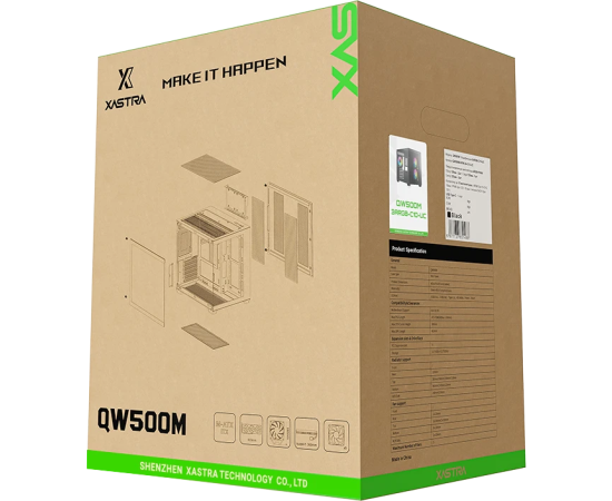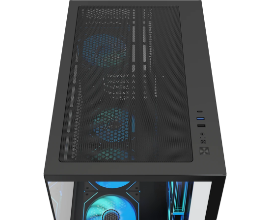 Корпус XASTRA QW500M 6ARGB-C10-UC Black (QW500M-6FM12A-C10-UC) mATX/Aquarium/Screewless/ 6x120mm ARGB PWM FM fans/Argb+PWM HUB 10port/Type-C