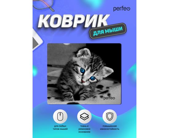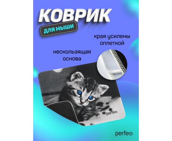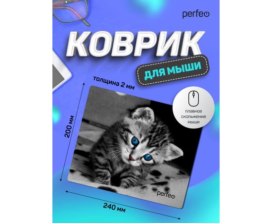 Компактный компьютерный коврик для мышки из серии CAT обладает гладкой тканевой поверхностью, которая обеспечивает точность и плавность движения - мышь скользит быстро и четко. Оверлочная строчка по краю увеличивает износостойкость и срок службы. Не скользящая резиновая основа надёжно фиксирует коврик на столе. Небольшой вес и хорошая гибкость позволят Вам взять коврик для мыши куда угодно для комфортного пользования ноутбуком. Качественный принт с котёнком будет вас долгое время радовать. Подходит для оптических и лазерных мышей с любой чувствительностью и любым типом сенсора. Размер: 240x200мм, толщина 2 мм. Материал: ткань и резиновое основание. Маленький коврик для мышки. Оптимальный размер. Не занимает много места на столе, удобно работать на компьютере.