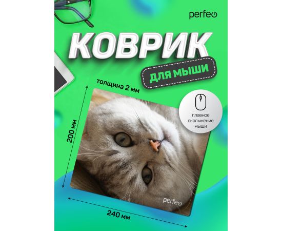 Коврик для компьютерной мыши "Cat", Рис.16 (240*200*2 мм), ткань+резиновое основание