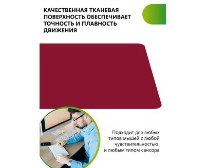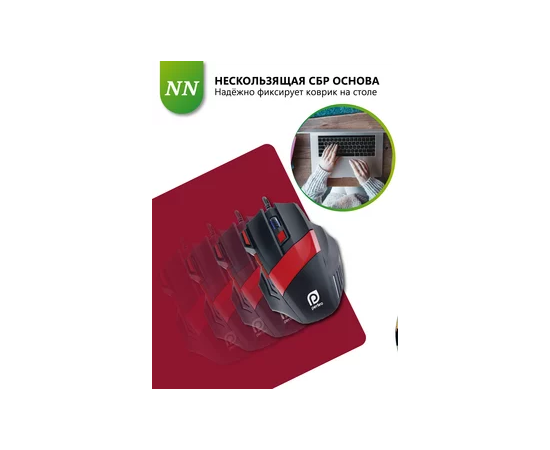 Компьютерный коврик для мышки из серии NN обладает гладкой тканевой поверхностью, которая обеспечивает точность и плавность движения-мышь скользит быстро и четко. Не скользящая резиновая основа надёжно фиксирует коврик на столе. Небольшой вес и хорошая гибкость позволят Вам взять коврик для мыши куда угодно для комфортного пользования ноутбуком. Подходит для оптических и лазерных мышей с любой чувствительностью и любым типом сенсора. При работе с ковриком вы получите максимальный комфорт независимо от поверхности стола. Так же коврик минимизируе шум при перестановке мышки и позволяет работать ночью. Мы рекомендуем использовать коврик для мышки, чтобы продлить срок ее службы, а так же при этом не стирается поверхность стола. Полезный аксессуар для ПК. Размер: 220x180мм, толщина 2 мм. Материал: ткань и резиновое основание. Коврик для мышки игровой, красный.