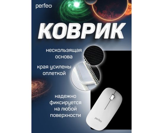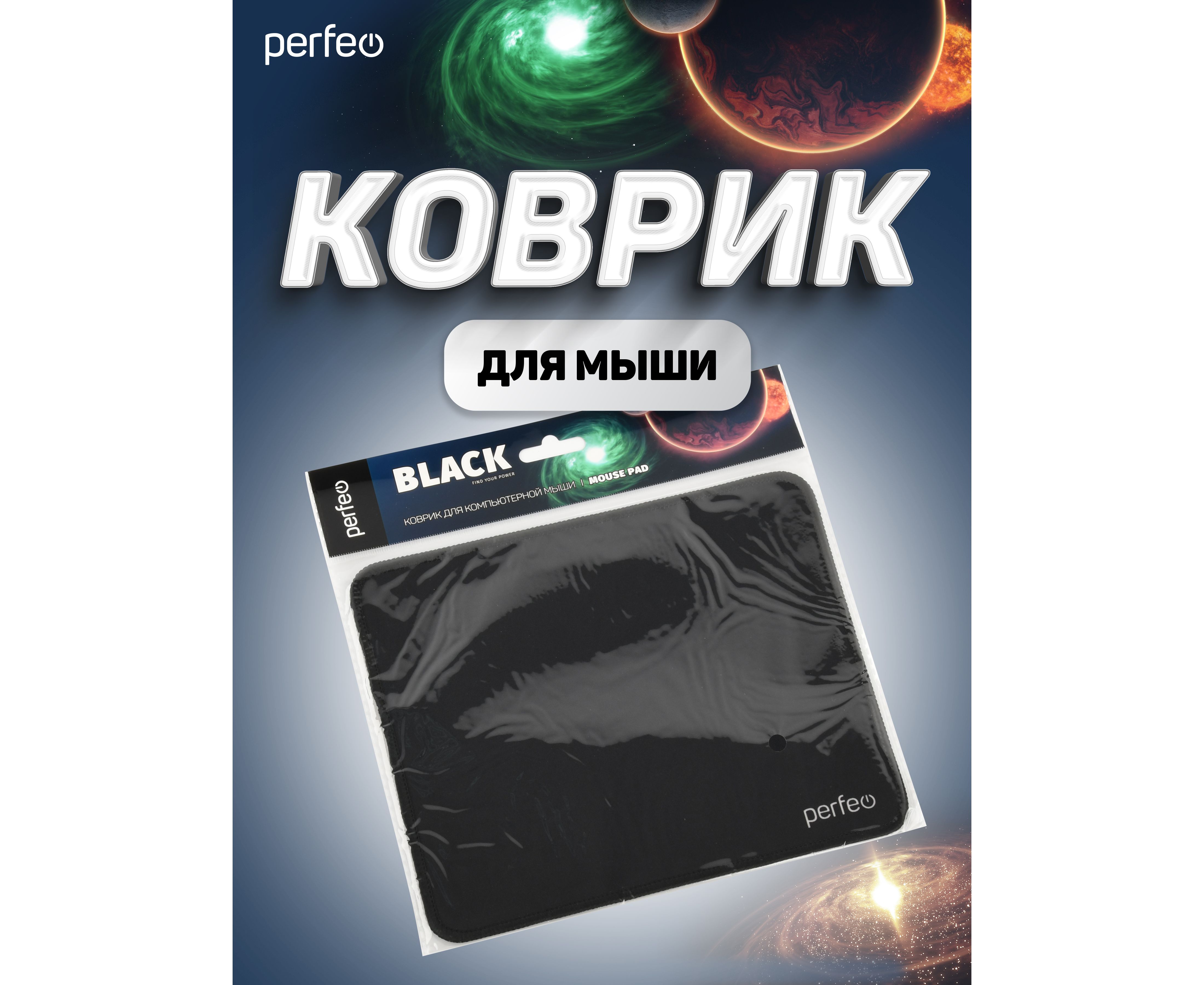 Коврик для компьютерной мыши Perfeo "Black", "Чёрный", (180*220*2 мм),ткань+резиновое основание