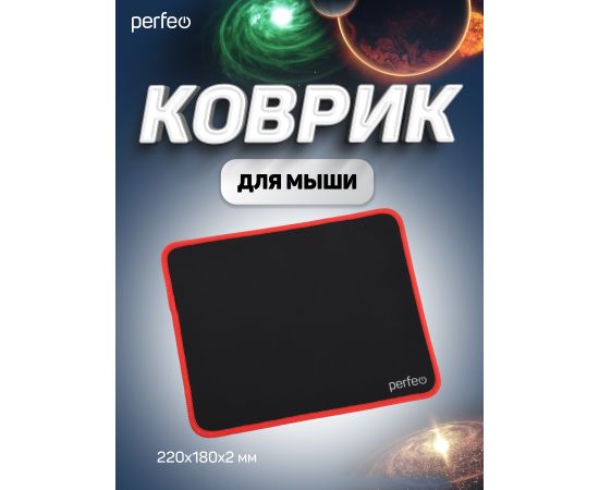 Коврик для компьютерной мыши Perfeo "Black", "Красный", (180*220*2 мм),ткань+резиновое основание