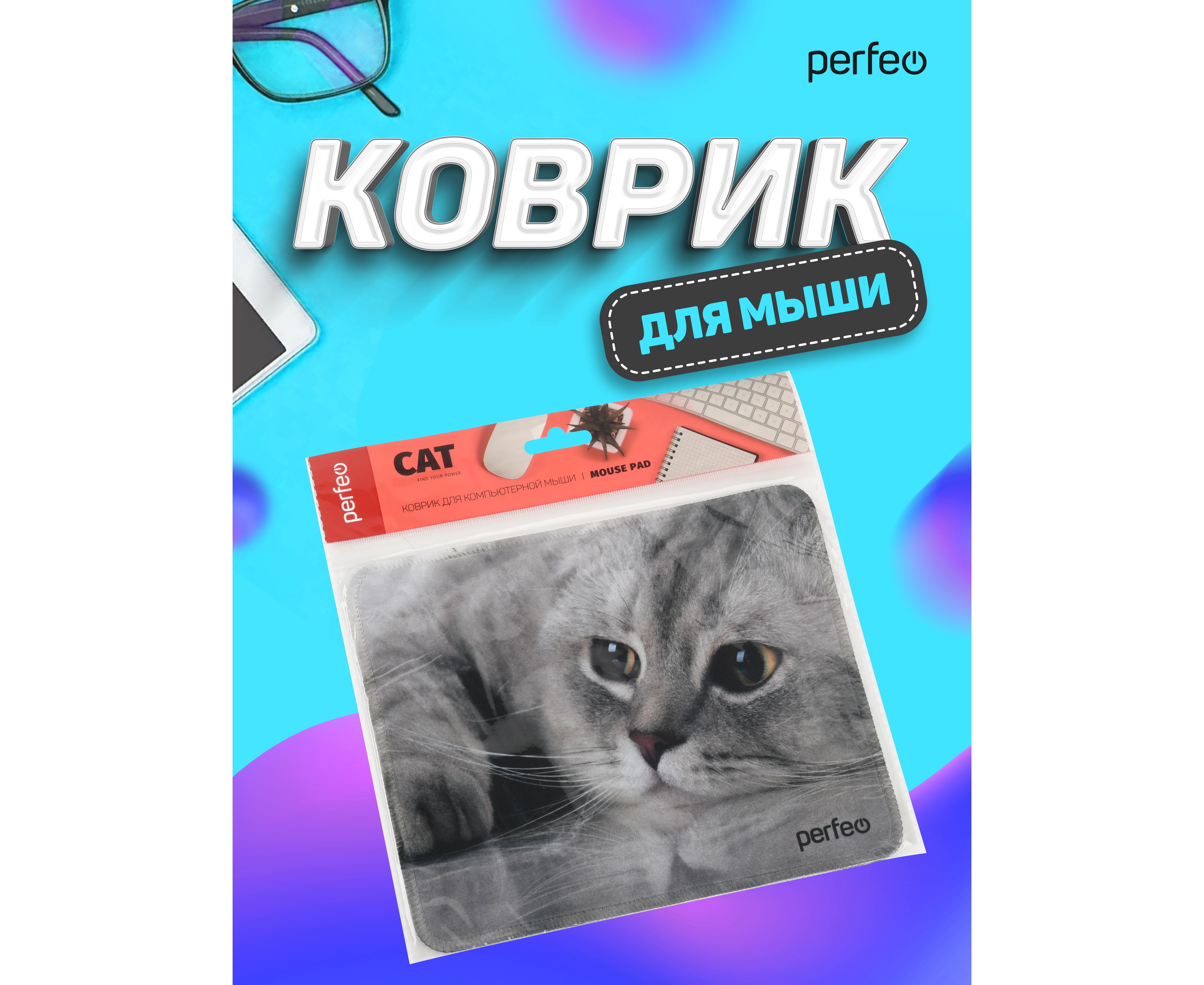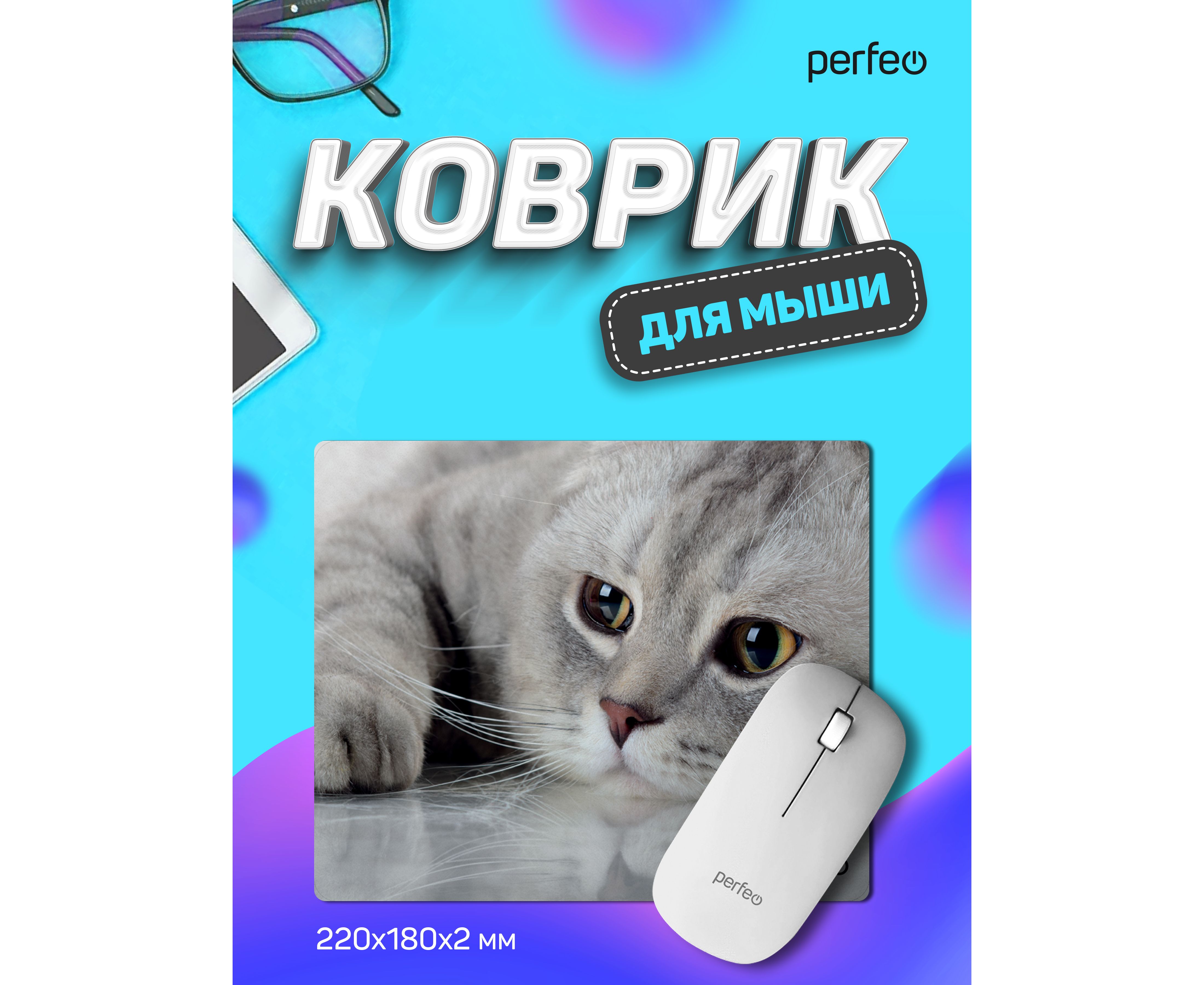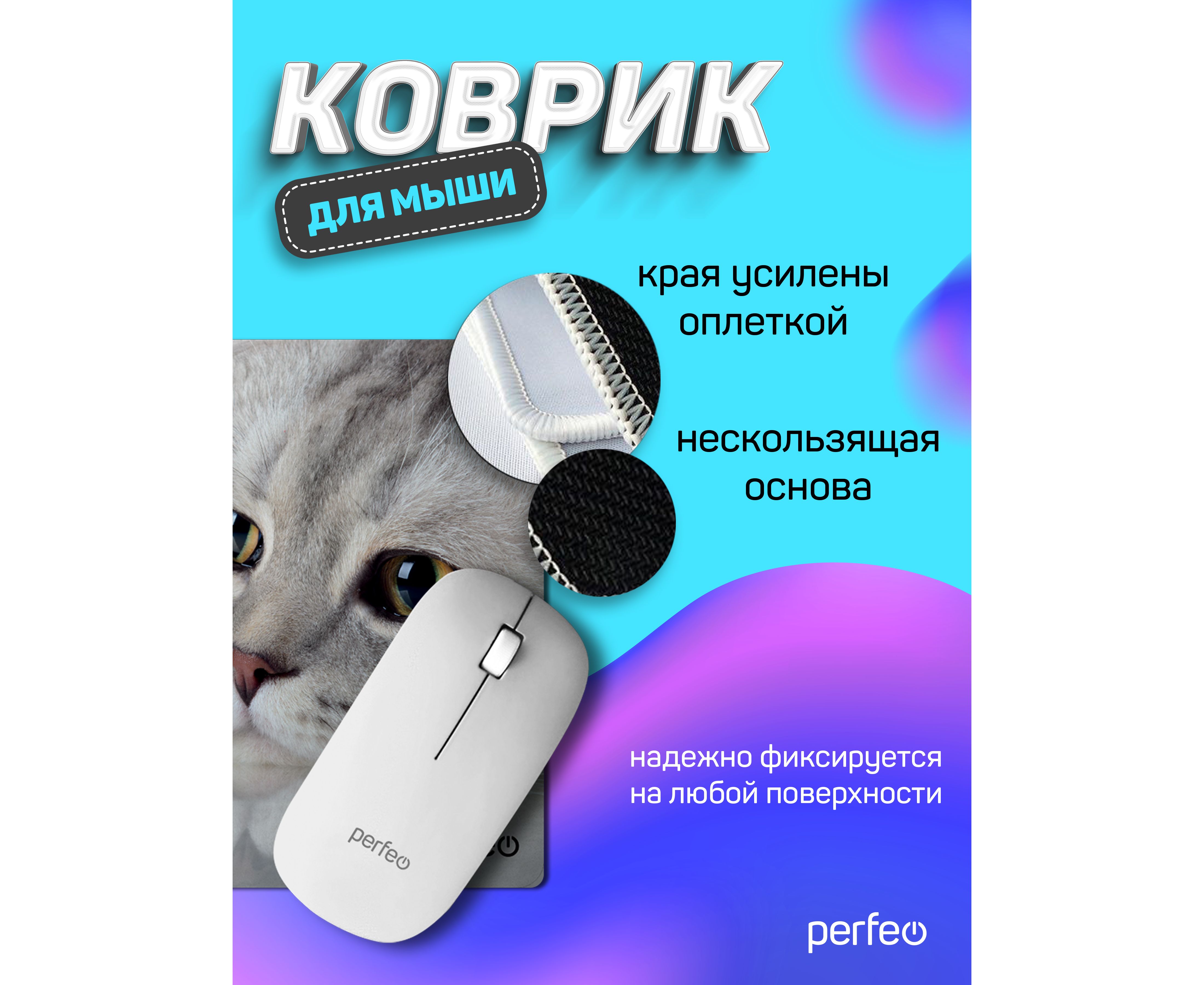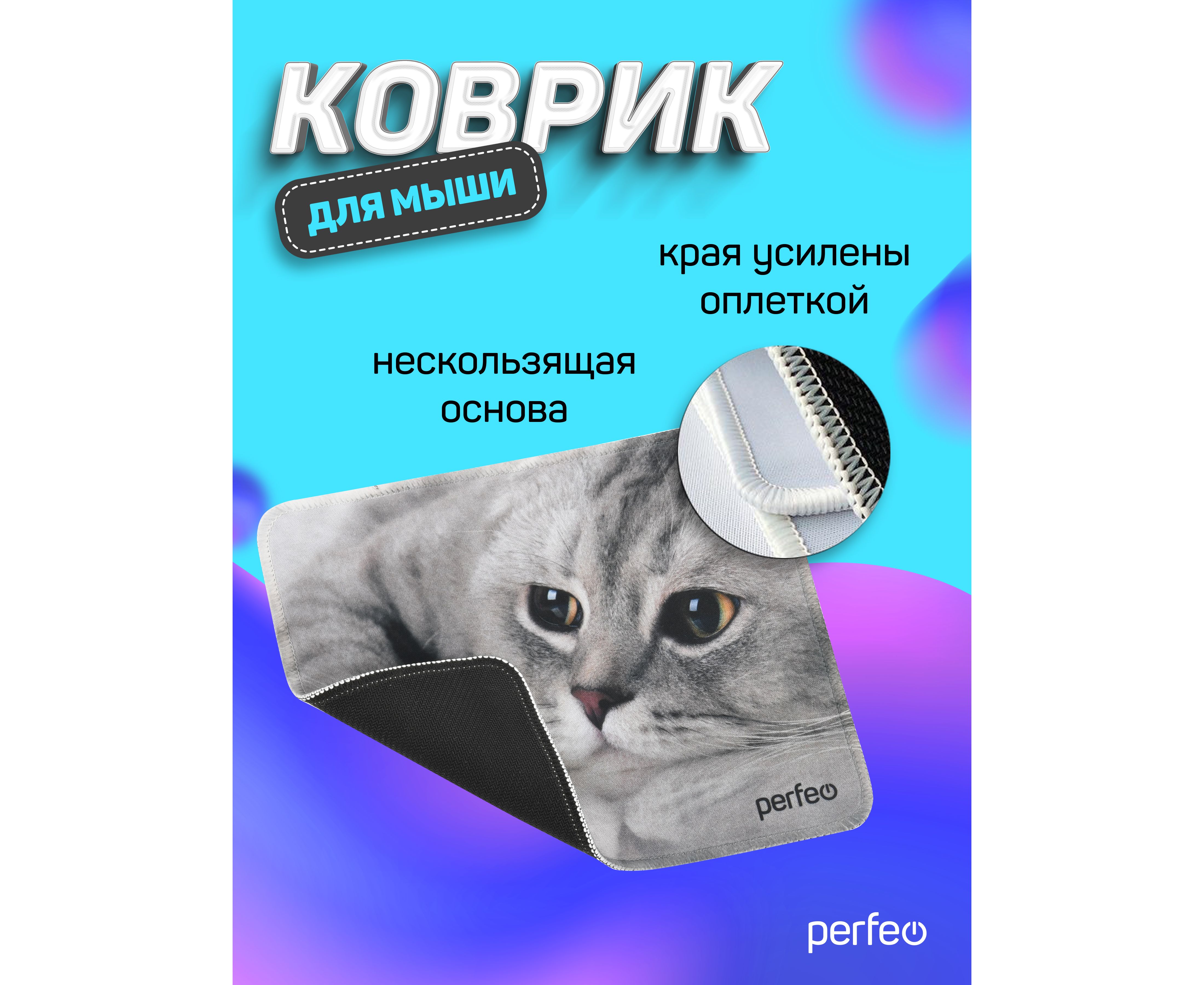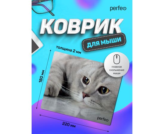 Коврик для компьютерной мыши Perfeo "Cat", Рис.22 (180*220*2 мм), ткань+резиновое основание