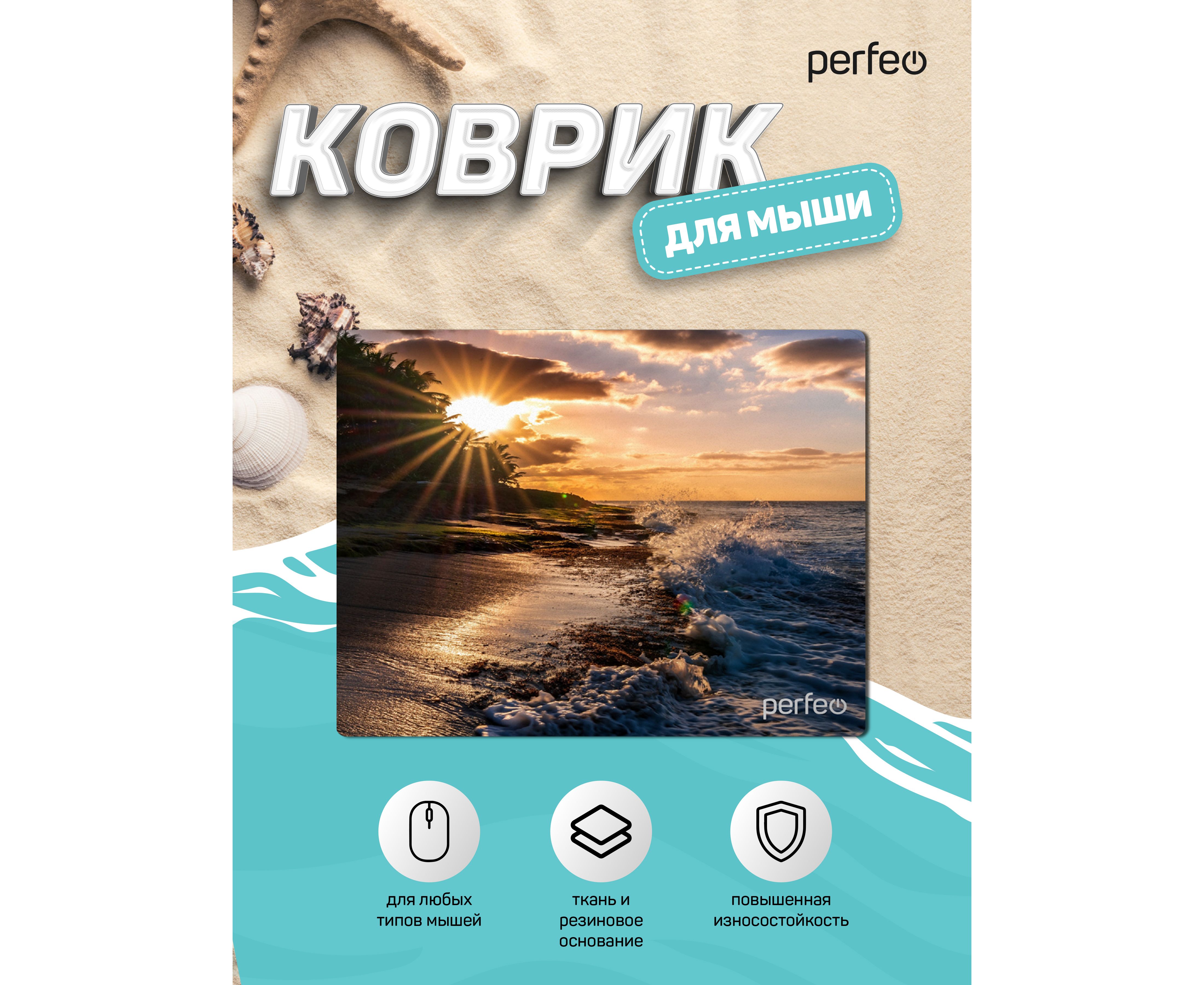 Коврик для компьютерной мыши Perfeo "Пляж", Рис.3 (180*220*2 мм), ткань+резиновое основание