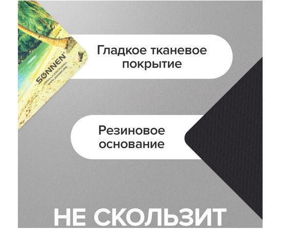 Коврик для мыши Sonnen 513294 BEACH, резина + ткань, 260х220х3мм