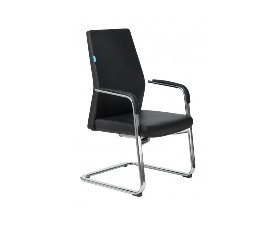 Кресло Бюрократ _JONS-LOW-V/Black на полозьях черный кожа