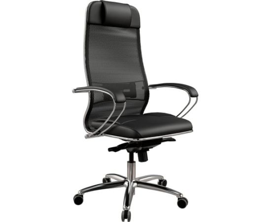 Кресло Метта Samurai SL-1 (ZA.2.1.49) черный сиденье черный сетка с подголов. крестов. металл хром