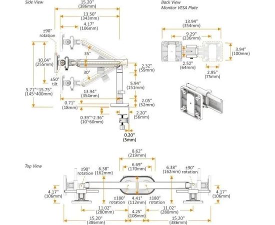 Настольный кронштейн для двух мониторов с системой слайдер.