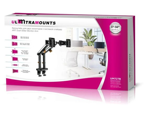 Кронштейн для мониторов Ultramounts UM727B черный 17"-32" макс.9кг крепление к столешнице поворот и наклон