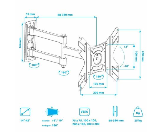 14"-42" Кронштейн Arm Media LCD-205 макс до 25 кг настенный, поворот и наклон черный