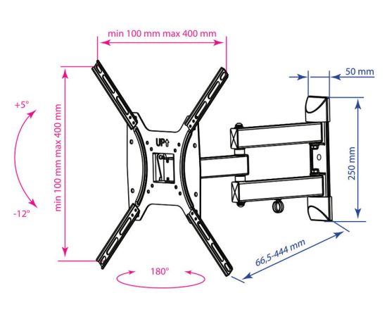 Расстояние от стены/потолка (макс) 44.4 см