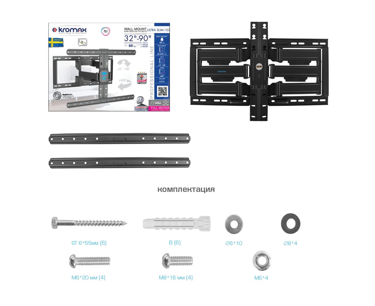 Кронштейн для телевизора Kromax Ultra Slim-102 черный
