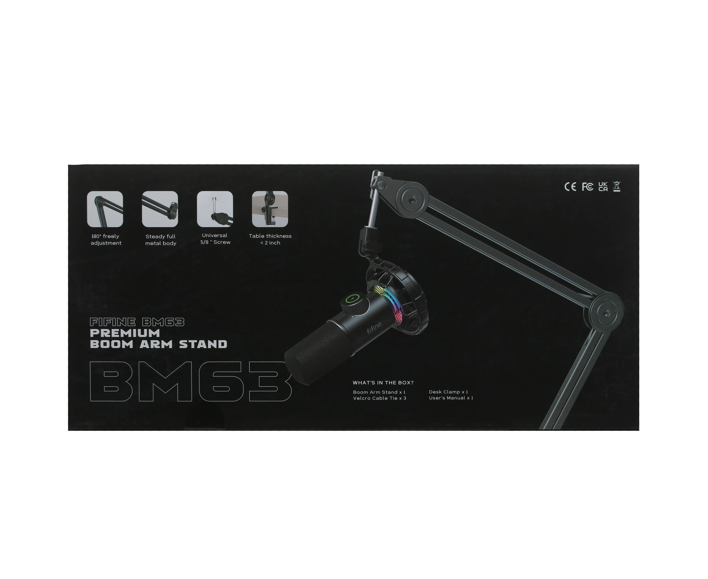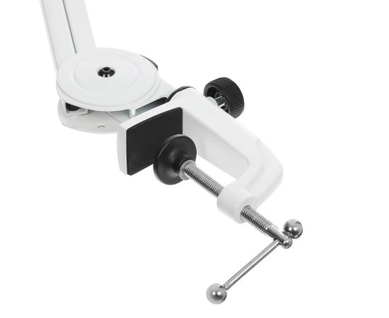 Микрофонная стойка Fifine BM63 крепится к столу с помощью струбцины. Сделана из металла. Вес — 1.2 кг.
