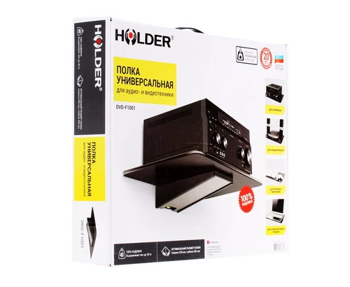 Универсальное крепление Holder DVD-F1001-B идеально для мультимедийного плеера, легко впишется в любой интерьер и значительно сэкономит пространство. При этом максимальная нагрузка, на которую рассчитан фиксированный кронштейн, равна 40 килограммам. Элементы крепления изготовлены из прочной стали, окрашенной в классический черный цвет, полка – из закаленного стекла. Максимальное расстояние от стены равно 365 мм. 500-миллиметровое крепление Holder DVD-F1001-B – это оптимальное решение для размещения Hi-Fi системы.