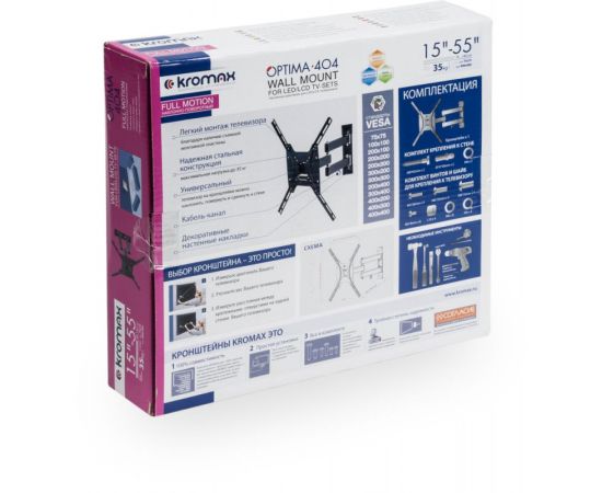 15"-55" Кронштейн Kromax OPTIMA-404 Наклонно-поворотный черный макс.35кг