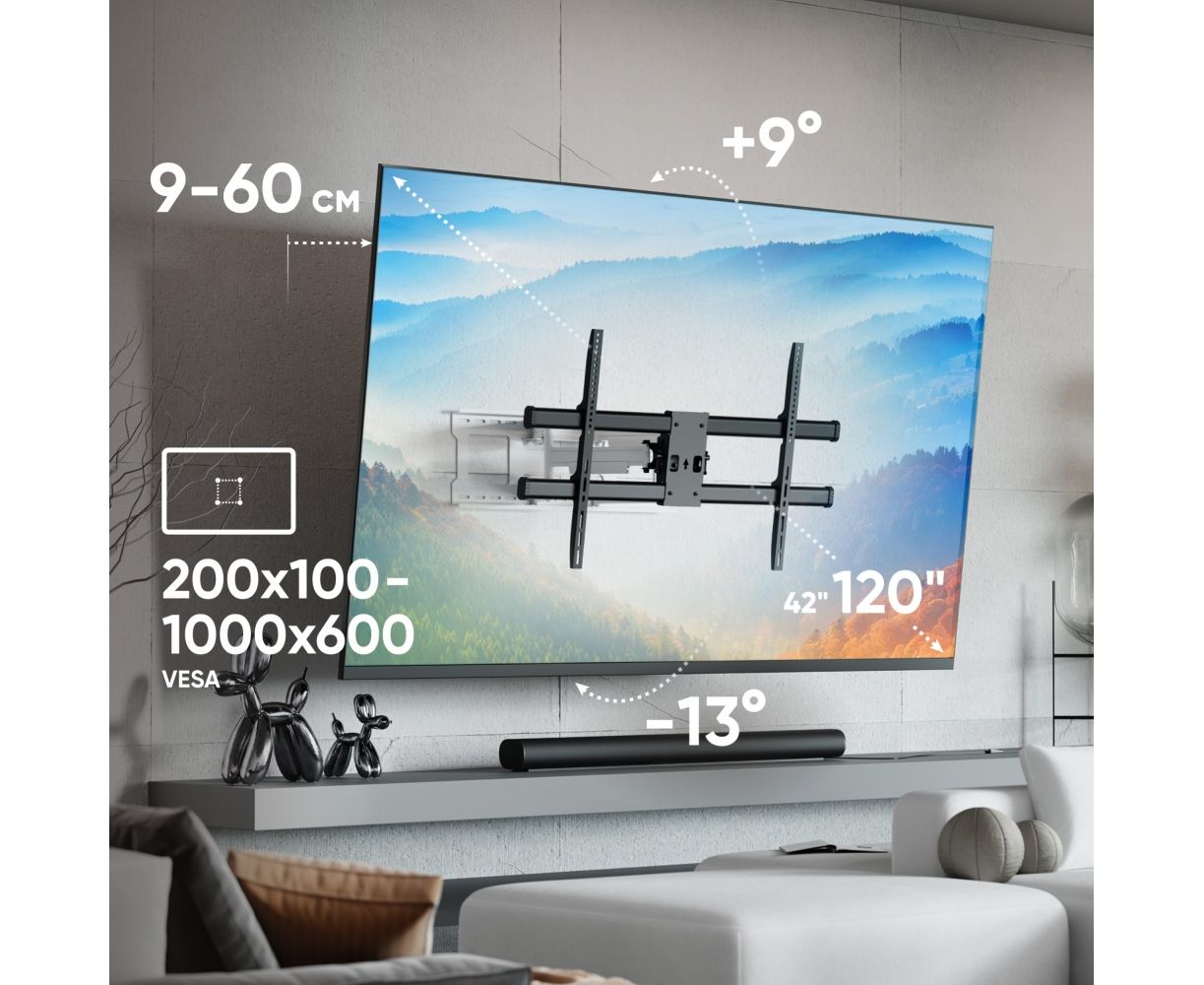 Кронштейн ONKRON M10-BW чёрно-белый Для экранов с диагональю 42"-120" наклонно-поворотный, макс. нагрузка 100кг
