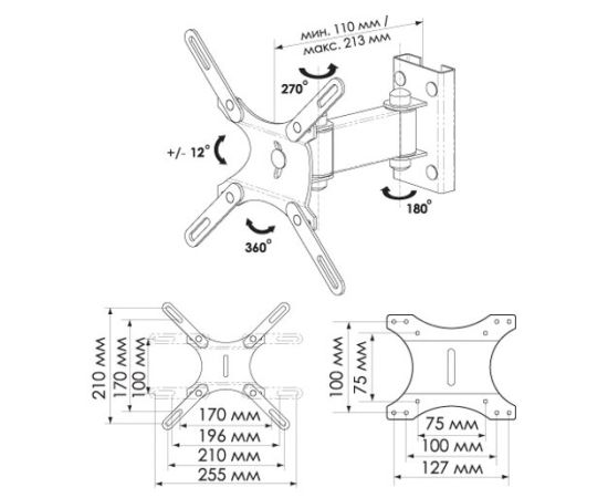 Вылет от стены/потолка: 110-213 мм