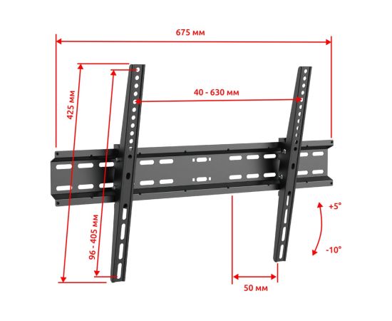 Увеличенная площадка крепления к стене обеспечит еще большую надежность вашего ТВ и подарит чувство безопасности вам и вашим близким. Вы можете занимать любое удобное положение при просмотре ТВ за счет широких возможностей регулировки угла наклона. Эти возможности позволят получать удовольствие от просмотра. Также вы сможете комфортно разместить телевизор и на большой высоте. Конструкция предусматривает крепление телевизора к настенной площадке кронштейна с помощью болтов. Они обеспечивают хорошие возможности фиксации без возможности быстрого демонтажа ТВ.