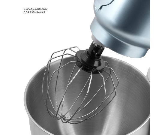 Насадка для замешивания теста, насадка для перемешивания и насадка-венчик для взбивания позволяют смешивать и взбивать различные виды ингредиентов.
