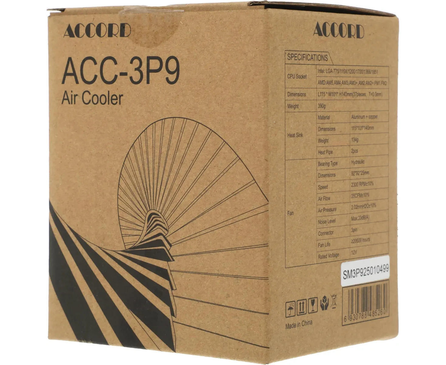 Кулер Accord ACC-3P9 Soc-AM5/AM4/1200/1700/1851 3-pin 22.7dB Al+Cu 130W brown box
