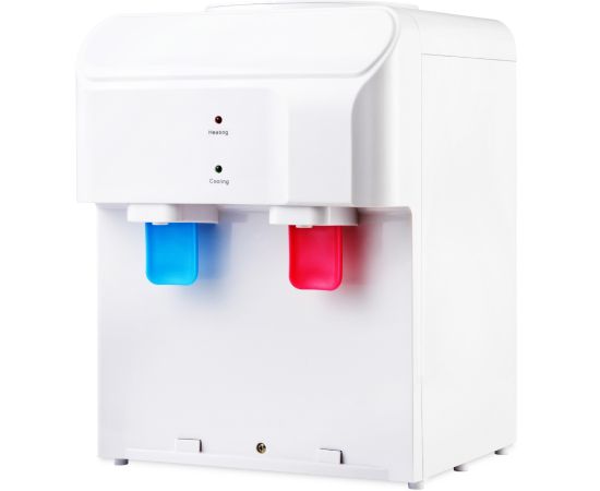 Данный кулер создан для людей, которые привыкли ценить свободное пространство, лаконичность и функциональность. На лицевой панели прибора расположены два пуш-крана. Один отвечает за тёплую воду, второй – за холодную. Индикации прибор также имеет необходимый минимум, для каждого крана работает своя лампочка, показывающая нагрев или охлаждение связанной с ним ёмкости.
