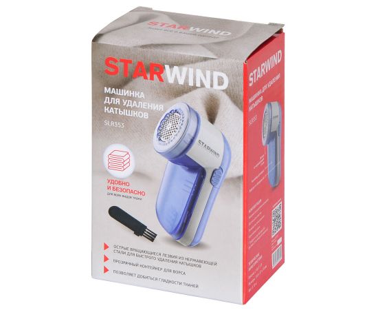 Машинка для снятия катышков Starwind SLR353 это надежное устройство, которое должно быть у каждого человека в доме. С помощью прибора можно ухаживать за различными предметами гардероба. Одежда не портится, а ткань остается целой. Даже на вязаных изделиях катышки убираются максимально тщательно и без возникновения затяжек. Работает машинка от 2 батареек типа АА. В конструкции предусмотрен прозрачный контейнер, позволяющий видеть степень его заполнения и вовремя чистить для лучшей работы устройства. Никакой грязи во время обработки одежды у вас не появится. Пользоваться устройством просто, достаточно нажать кнопку.