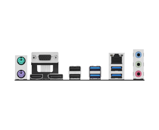 2 x PS/2, 2 x USB 2.0, 4 x USB 3.2 Gen1, VGA, HDMI, DisplayPort, RJ-45
