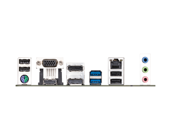 PS/2, 4 x USB 2.0, 2 x USB 3.2 Gen1, VGA, HDMI, 2 x DisplayPort, RJ-45